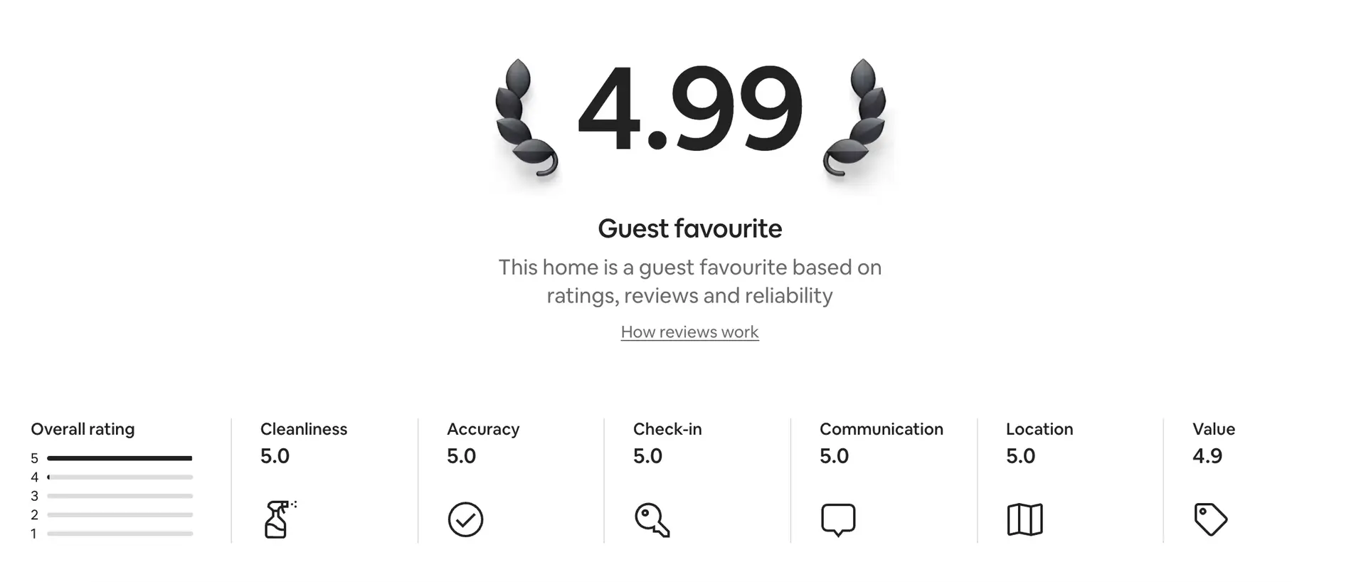 Airbnb boosts new listings and advises to offer a discount to the first visitors. Our first travellers were a very nice couple who left us a perfect 5/5 rating and a positive review, which quickly attracted more bookings.
