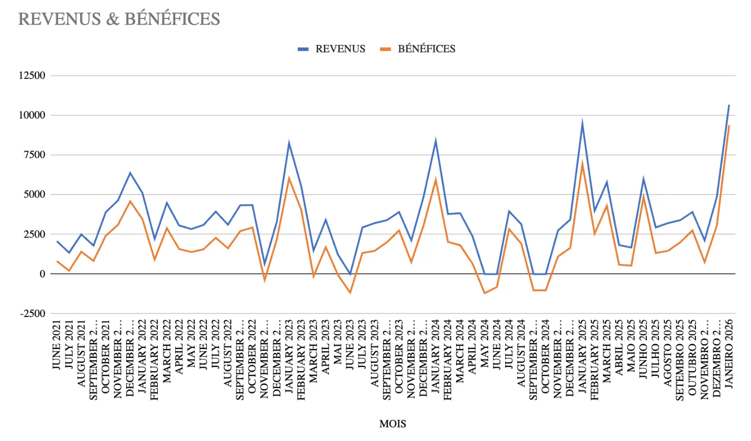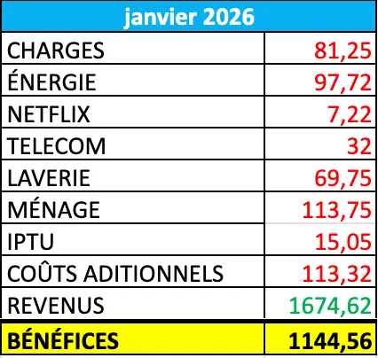 Here are our revenues and profits from the moment our flat was rented out, in June 2021, until January 2026, as well as the costs and profits generated in January 2026.